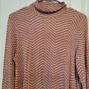 Clayton Mauve Mock Neck Turtleneck Chevron Tunic Dress Size Large Jersey Knit