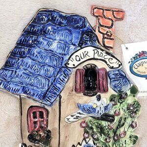 Up for sale is Clayworks by Heather Goldminc Blue Sky Our Place Ceramic Hanging Cat House 10". Brand new with tags. Beautiful piece! Measures roughly 10" x 8". Please view all photos closely!