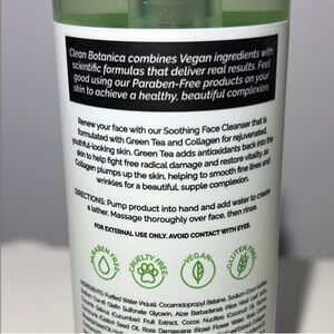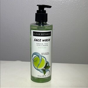 Clean Botanica face wash with green tea and collagen. Soothing and rejuvenating formula.