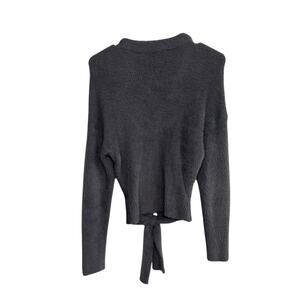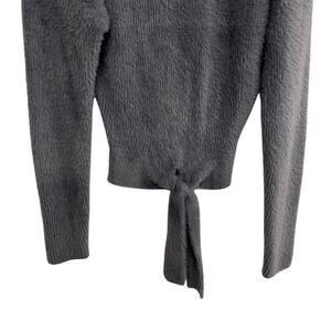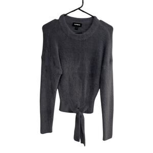 Clean Girl Tie Front Fuzzy Sweater Express Gray XS