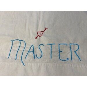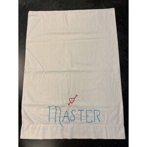 PAIR Vintage Master and Slave Embroidered Pillowcase Set Standard Queen/Full Sized 29x20.5 CLEAN & undamaged & smell good as stored in cedar chest for years. Shipped w Buyers choice of USPS Ground Advantage or Priority Mail. B7.