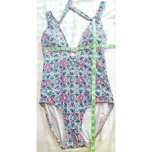 Cleanwater Geometric Deep Cut Halter Swimsuit Size Medium