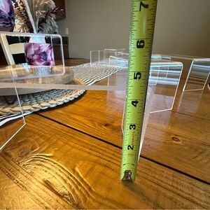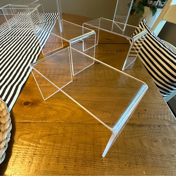 Set of clear acrylic display risers. Perfect for showcasing items.