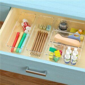 Clear Acrylic Drawer Organizer Set 6 Pack Makeup Jewelry Office Storage Bins