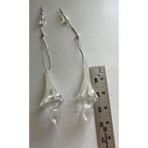 Clear Acrylic Drop Ornaments Glitter Detail & Silver Beaded String Set Of 5