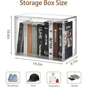 🧿Stackable Slots Design:The top and side of the acrylic box feature two small slots, which can be used for connecting and fixing multiple acrylic boxes. This design allows multiple storage bins with lids to be combined into a single storage cabinet or display wall.The stackable storage bins are perfect for storing a variety of handbags and doubles as a display case for anime collectibles and room decor, enhancing your home's aesthetics. They can also be used for cosmetics, clothing, and other household items.