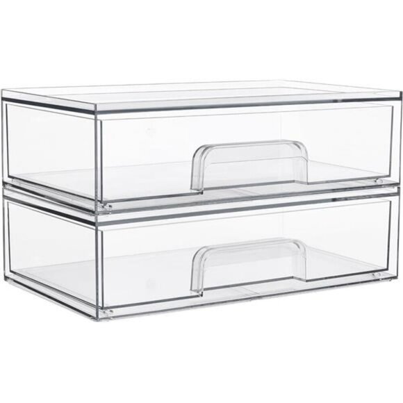 Clear Acrylic Storage Drawers 2 Pack Stackable Makeup Bathroom Organizer Bins
