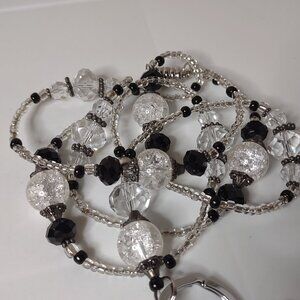 Clear And Black Glass Bead Lanyard. Check Out My Other Items For Great Deals!!! Thank You For Considering Making A Purchase.
