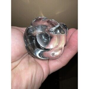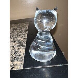 Clear Art Glass Paperweight Fox Cat Figurine Blown Figure Vintage. Some scratches but more pronounced with the flash in photos.
