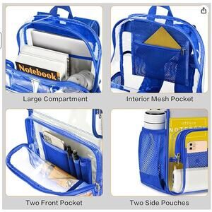 Clear Backpack Heavy Duty, See Through Bag, Transparent Stadium Bag, Blue