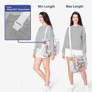 Custom comfort strap: The extra-long adjustable shoulder strap fits all body types whether you're wearing it over a winter jacket or summer tank; Designed for all-day wear Self-standing convenience: Unlike flimsy bags, this sturdy PVC tote stands upright on its own whether you're loading snacks at a tailgate or sorting work supplies at a warehouse