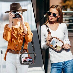 GET THROUGH SECURITY EASILY This clear crossbody bag stadium approved measures 7.7x2.6x6.3 inch, not too big but enough if you only need to take the basics like a lipstick, cellphone, small wallet, keys, sunglasses, portable charger and any other things you need.