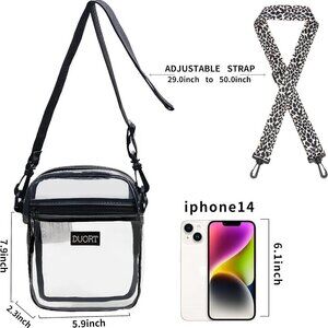 Package Included: Includes a clear bag with a black strap and a complimentary colored strap that are both adjustable. You can easily adjust the straps to fit different needs. In addition, it works for both men and women. If you receive a bag with some wrinkles, you can lay the bag flat and it will gradually recover