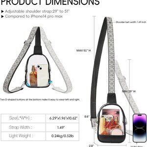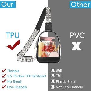 Multi Ways to Carry: This clear bags for women has an adjustable shoulder strap, Wide adjustable shoulder straps make carrying heavy loads more comfortable. You can tighten or loosen the strap to fit your body type or activity needs.It could be a small crossbody sling purse to wear on your body or as a sling bag or cross-chest bag or small crossbody shoulder bag.