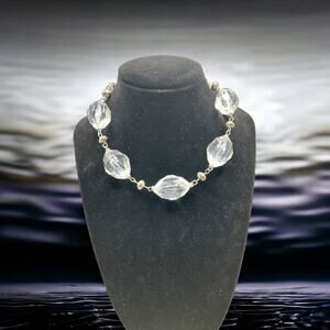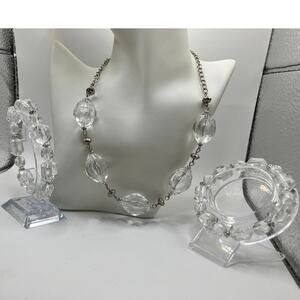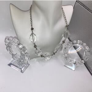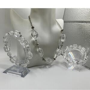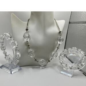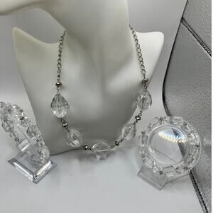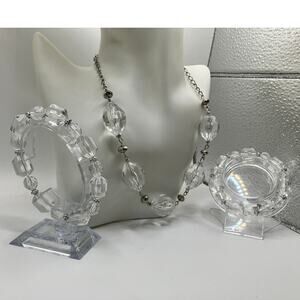 Clear Beaded Crystal Silver-Tone Spacers Necklace & 2 Bracelets Set!
