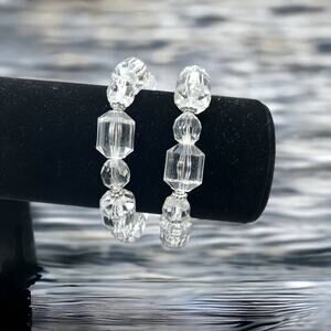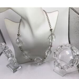 Clear Beaded Crystal Silver-Tone Spacers Necklace & Two Bracelets Set!