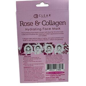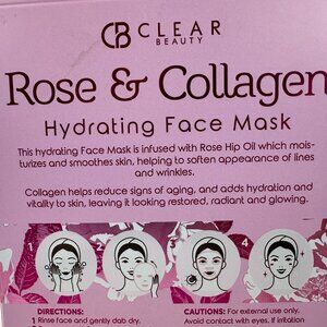 Clear Beauty Rose & Collagen Hydrating Face Mask Toning & Wrinkle Reducing NEW