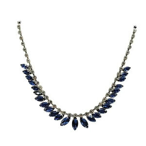 Clear Blue Glass Rhinestone Retro Style Silver Tone Choker Necklace BLING