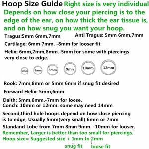 Sold as a Single Piece Size: Bar thickness: 16 gauge Inner diameter: 8mm the thickness can be used for most piercings. Please choose the diameter carefully according to your piercing size and nose size.