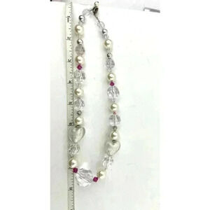 Clear Chunky Glass Heart Plastic Beaded Necklace Wired Faux Pearl 18" long