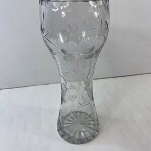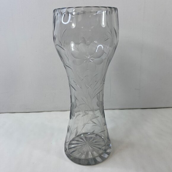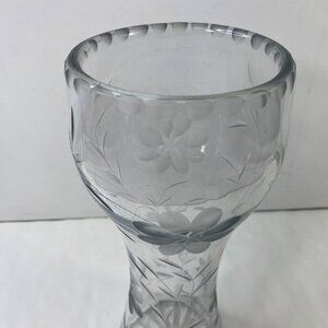 Clear Corset Cut Glass 12" Crystal Vase Floral Daisy Star Center Vintage
