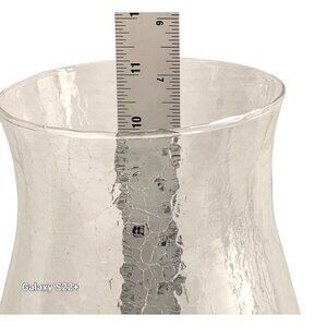 No chips and looks like new. This handcrafted crackle glass hurricane candle or light cover brings timeless elegance to any space with its textured crackle design that beautifully diffuses light. Standing 12 inches tall, its durable handmade construction ensures each piece is unique, adding sophistication to floral arrangements, candle displays, or as a standalone decorative accent.