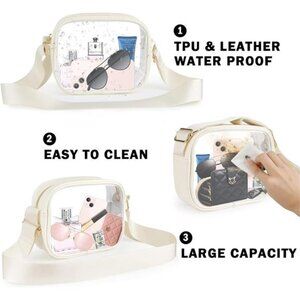 *[Waterproof Thicker TPU & Leather Clear Bag] KETIEE clear crossbody bag for women stadium approved is made of waterproof TPU & beige leather rather than PVC, keeping all your stuff dry all the time. But the water may get in through the zippers if you submerg it in water or in heavy rain. Our stadium clear purse is easy to clean and can be wiped directly with a damp cloth. Let it dry naturally after washing.