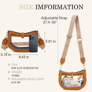 Features: Stylish see-through design with adjustable strap for versatile wear as a crossbody, shoulder bag, or handbag. Spacious yet compact, it fits your phone, wallet, keys, and sunnies with ease, making security checks a breeze at stadiums and events. Sleek faux leather trim and modern hardware add a touch of chic to this practical bag.