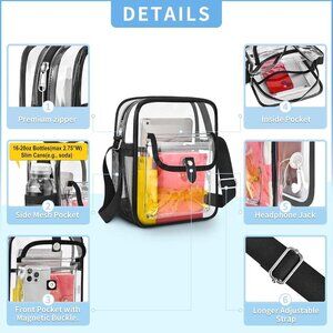 Clear Crossbody Bag for Stadium Events & Concerts - Adjustable Shoulder Strap Pu