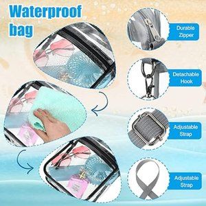 - Material: Transparent PVC material on bag with black canvas accents and strap