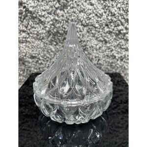Clear Crystal Glass Crystal Hershey Kiss Mini Candy Dish With Cover 4.5"X5"