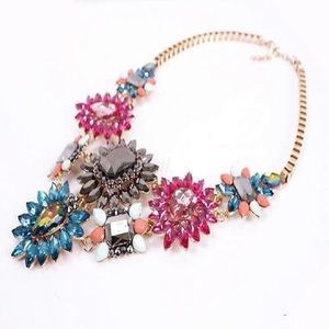 Clear Crystal Rhinestone Chunky Bib Flower Choker