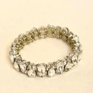Clear Crystal Rhinestone Silver Tone Stretchy Sparkly Bracelet