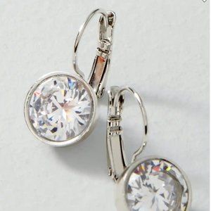 Sparkle + shine when you wear these clear cubic zirconia drop earrings. The faceted stones, bezel-set in silvertone metal, catch the light to come alive, adding spirit and style to daytime and evening looks.