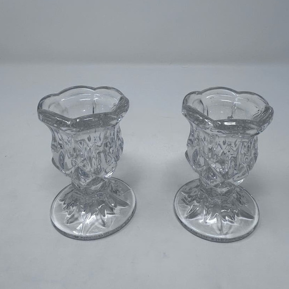 Clear Cut Crystal Candleholders Made in Germany Set of 2 3" Tall x 2" Wide