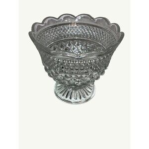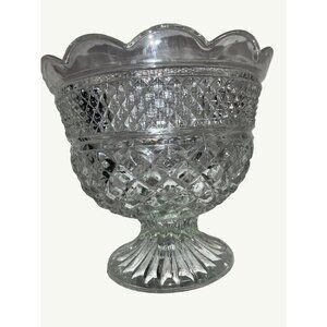 Clear Cut Glass Pedestal Bowl 8" across 7" Tall, Scalloped Edge Vintage