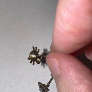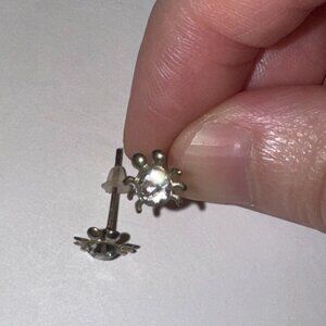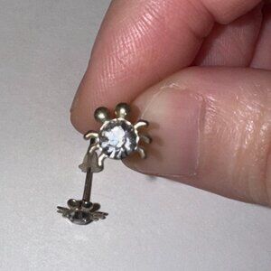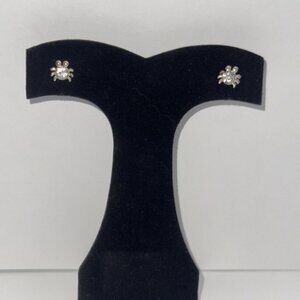 Solid sterling silver earrings shaped like a cute little spider with a rhinestone in the center. 8.25mm Spider Clear Cz and sterling silver post earrings. 4.63mm in size come with a silicone stoppers. The center Cz stone is actually 4.63mm. These will be shipped with an anti-tarnish paper in the baggie with the earrings so they don't tarnish as fast.