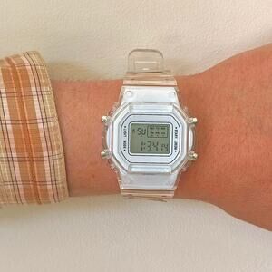 Clear Digital Watch White Accents Unisex Y2K Style Quartz New