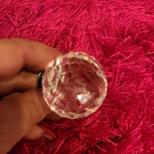 Beautiful clear knobs that can be used on any cabinet door or dresser drawer. Changing the knobs gives your furniture a fresh look.. They are about an 1 1/2 inches in diameter Price is for the set of 6. You need your own screws.