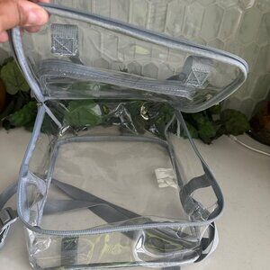 A functional and durable clear tote bag ideal for travel, stadium events, or work environments requiring transparency. Features secure zippers and lightweight materials.
