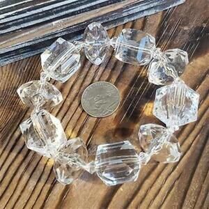 Clear Faceted Lucite Beads Chunky Hand Crafted Stretch Bracelet