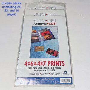 These are Clear File Archival Plus photo pages for 4x6 and 4x7 prints. Archival safe for long-term storage: acid free, PVC free and made of high-clarity polypropylene. I’m the original owner. I made ~15 photo albums with these pages over the last 20 years and I can vouch for the quality. The photos and pages look exactly as they did when I made the albums.