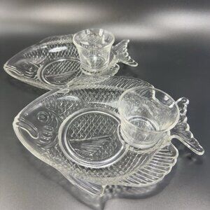 Clear Fish Dish Plates And Cups Teacup Saucer Set Votive Candle Holder 4 Pieces