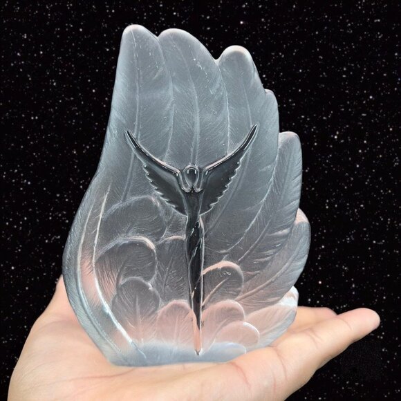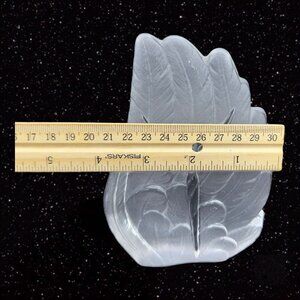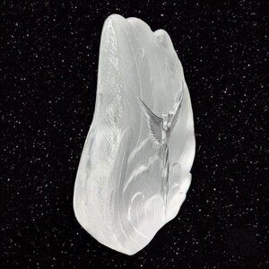 Clear Frosted Feather Shaped Glass Paperweight With Angel In The Middle Thick