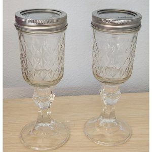 Clear Glass 2 pc Red Neck Wine Glasses with lid 8" Tall 4" Glass 4" Stem