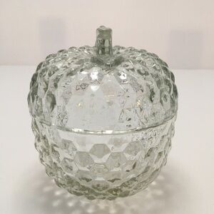 Clear Glass Apple Candy Dish Pressed Glass Lidded Imperial Faceted 5 Inches Tall