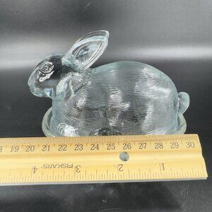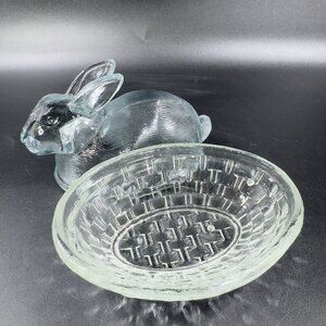 Clear Glass Bunny On A Nest Covered Dish Container Jar Box Storage Glass Box