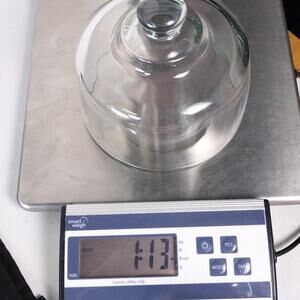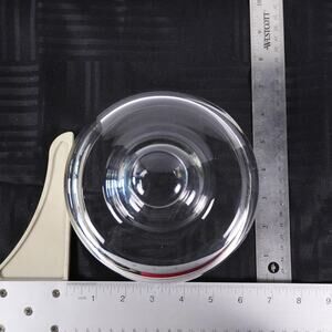 Display your delicious cakes and cupcakes in style with this beautiful clear glass cake lid! This 6.5" round dome is perfect for serving and protecting your baked goods. Add a touch of elegance to any occasion with this lovely glassware piece. It's in great condition and ready to be the star of your next dessert table!
