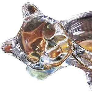 This clear glass cat-shaped dish features a sleek, minimalist design that adds sophistication to any decor. Ideal for holding small accessories or as a decorative piece.