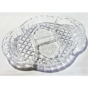 Clear Glass Diamond Cut DIVIDED SERVING DISH Dogwood Flower Oval Platter Plate